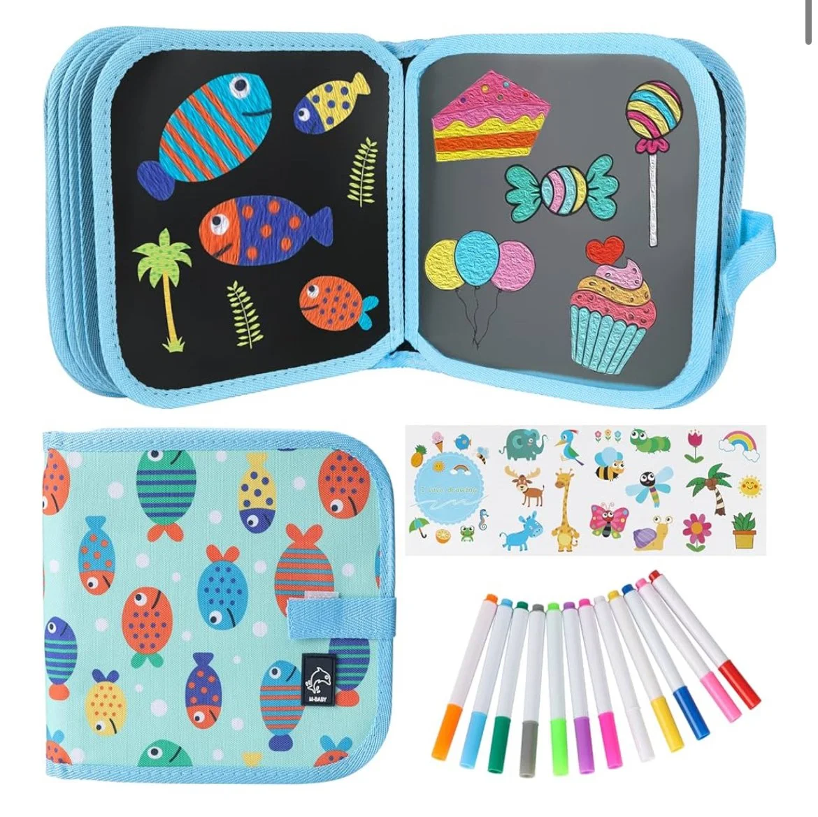 These chalk marker erasable drawing pad journals are a favorite for both kids and great for all ages. Sometimes mine will write and/or illustrate a whole book by filling up each page, and sometimes they play tic-tac-toe by passing back and forth in the car, they also enjoyed simply doodling when they were younger! Endless possibilities - and so many fun themed covers!